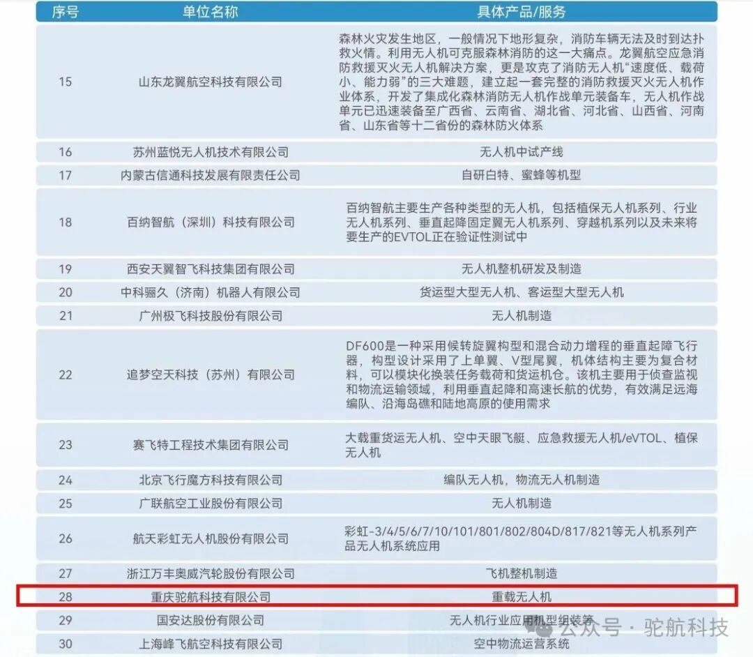 “驼峰”重载无人机行业案例丰富,是业内单一交付量最大的飞机,唯一入选工信部国家首台(套)重大技术装备的无人直升机,同期入选的还有C919.C909和新舟60等“国家队”飞机。
